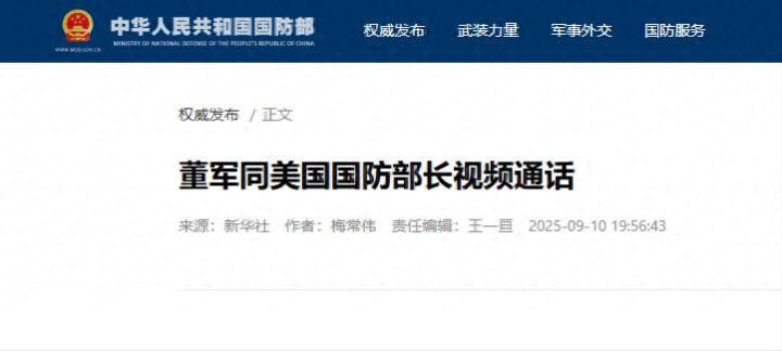 9月9日晚上,美国国防部长赫格塞斯应约与中国国防部长董军视频通话。