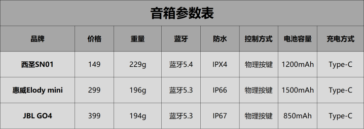 考虑到大家可能对三款音箱不是很了解,所以我将三款音箱的整体参数总结放在下面,大家可以作为参考: